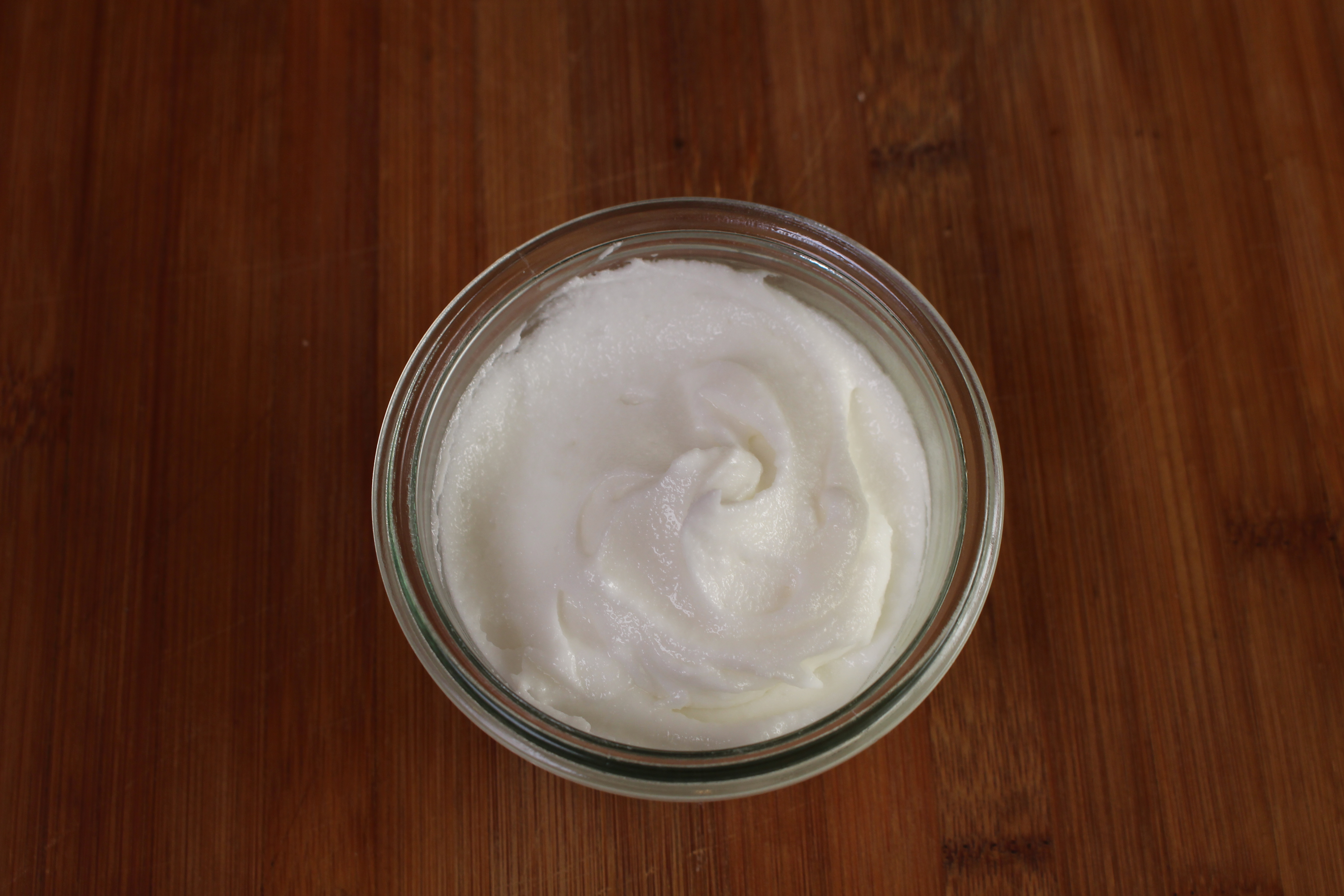 Add all the ingredients to a stand mixer or a bowl using a hand mixer. Whip on high for 5 minutes. The mixture will become light and fluffy. It will grow a little bit in size. Store in a glass container with a lid. This is shelf stable and should last you for up to 6 months. Remember–a little bit goes a long way so use sparingly.
